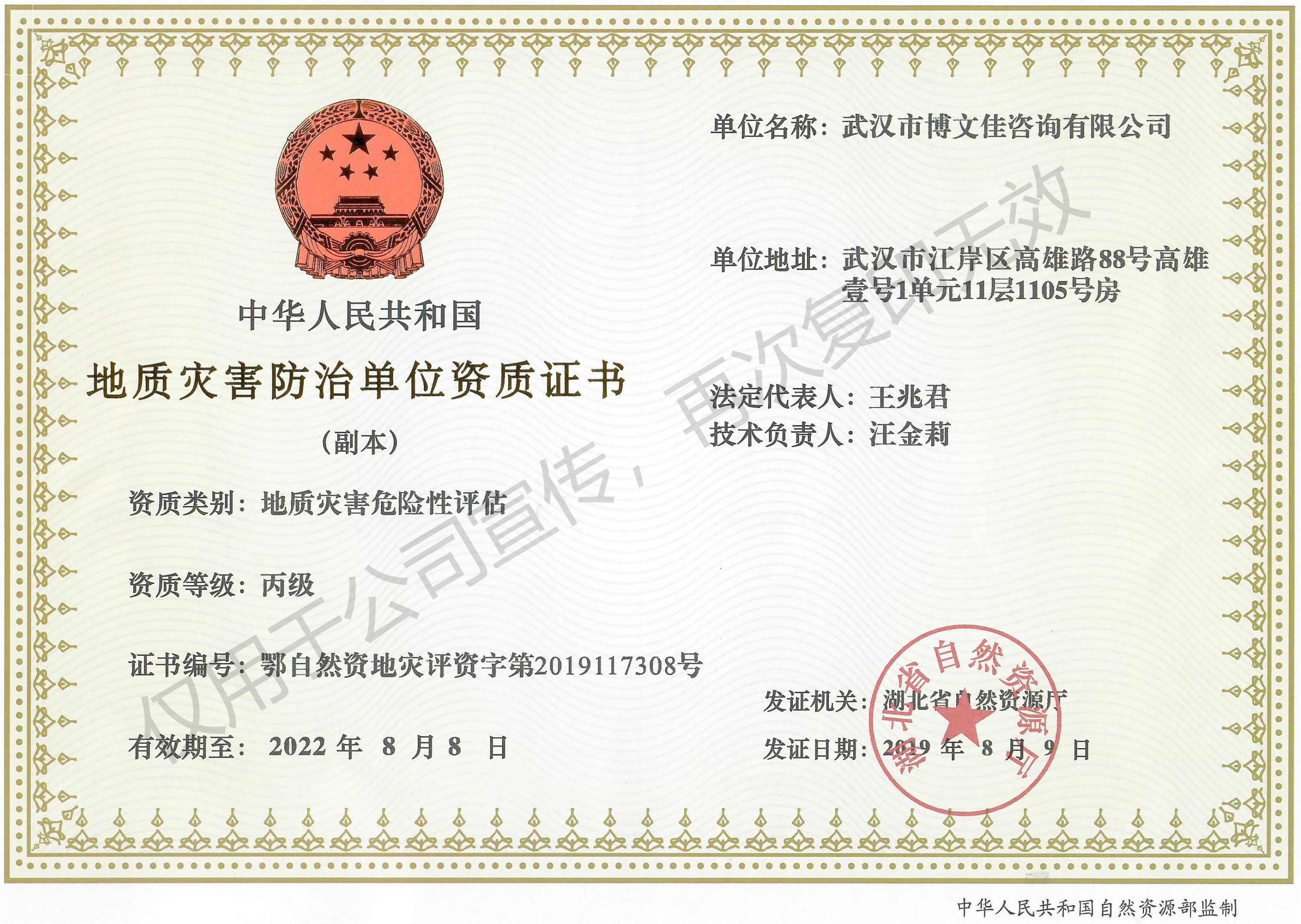 • 地址災害防治單位資質證書